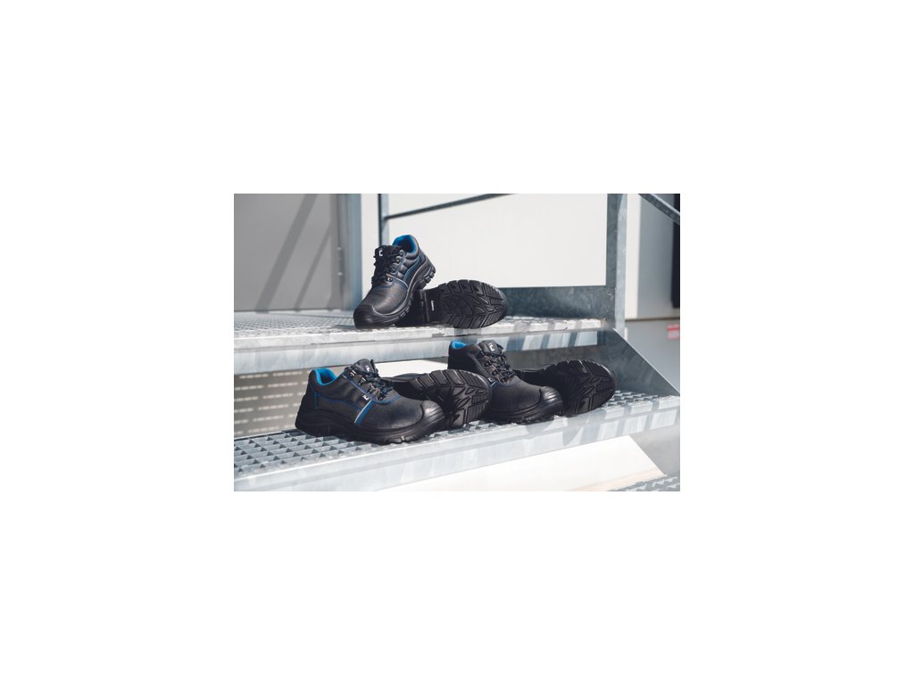 • klasické bezpečnostní polobotky s ocelovou tužinkou ve špici, která chrání před stlačením silou do 15 kN nebo pádem břemena o váze do 20kg z výšky 1m • antistatická robustní podešev vyrobena z dvouhustotního polyuretanu garantuje nejenom komfort, ale i bezpečí díky protiskluzným vlastnostem podrážky, která je navíc rezistentní olejům a oděru • svršek obuvi je vyrobený z přírodní štípenkové kůže a vnitřní podšívka z prodyšného polyesteru • tento model spadá do kolekce obuvi RAVEN XT, která nabízí až 22 modelů bezpečnostní a pracovní obuv ve všech standardech (S1-S3, O1, O2) a všech možných provedeních: od sandálu přes polobotky, kotníkovou a poloholeňovou obuv až po holeňovou • díky této široké škále kolekce RAVEN XT dokáže uspokojit požadavky všech zákazníku, také díky skvělému poměru cena/kvalita zpracování