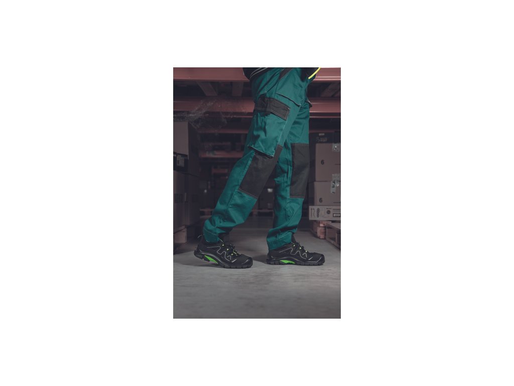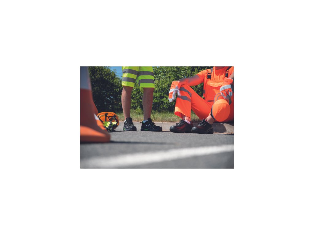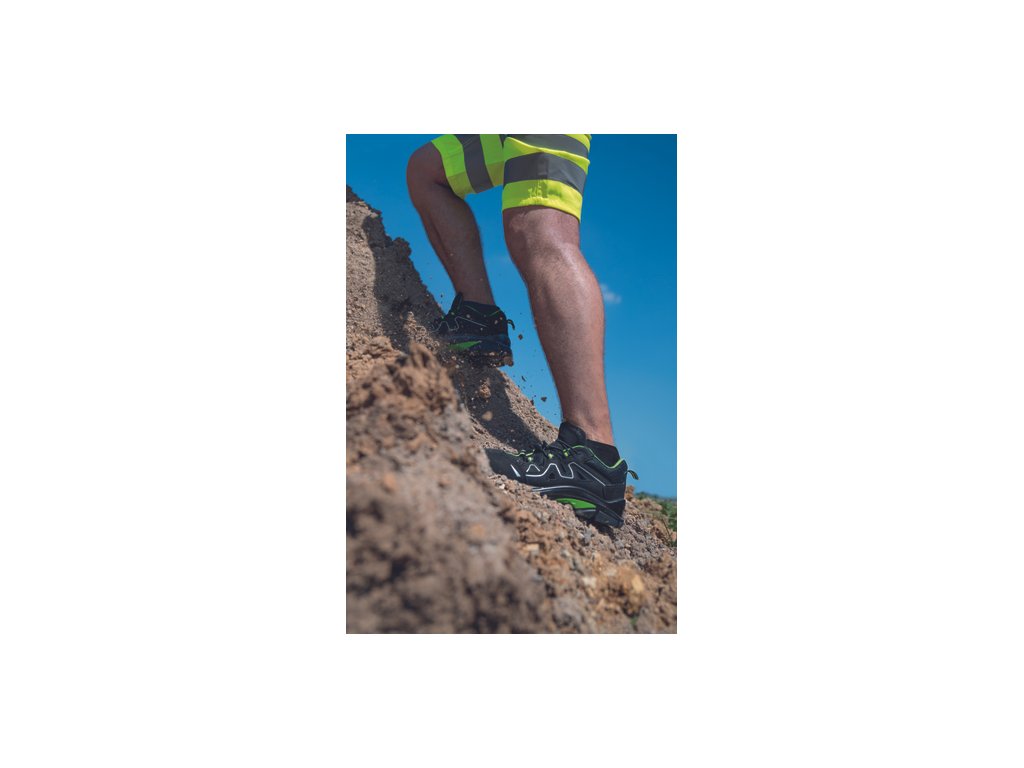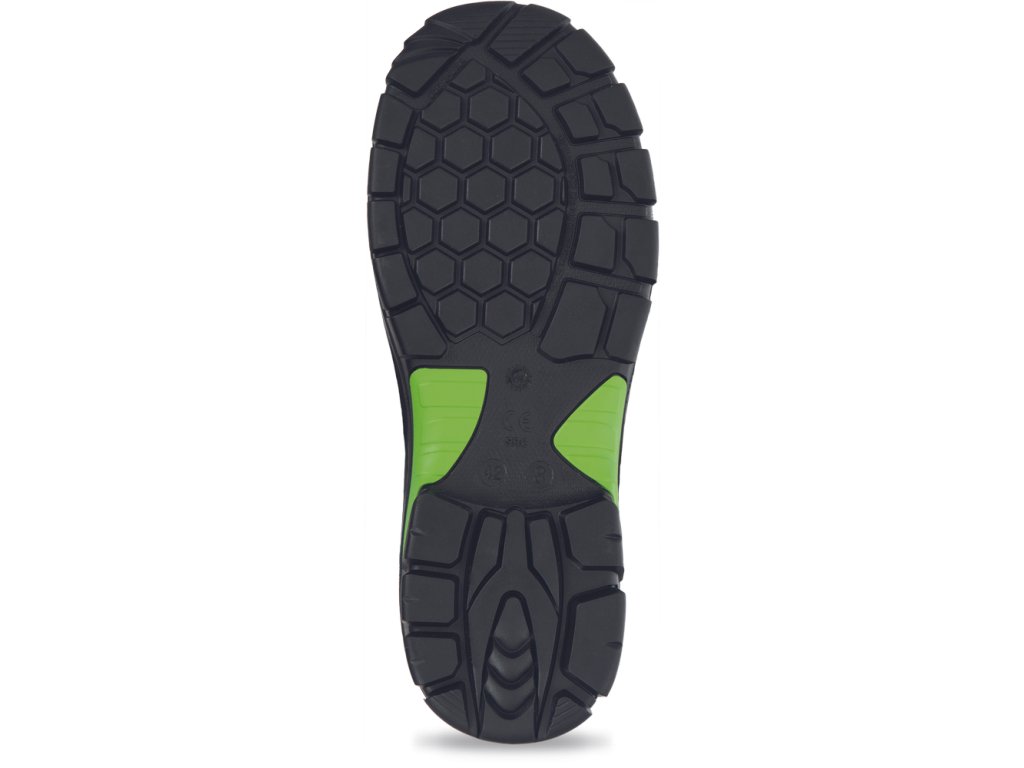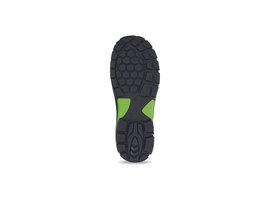 Moderní bezpečnostní sandály s kompozitní stélkou proti propichu a kompozitní tužinkou ve špici, která chrání před stlačením silou do 15 kN nebo pádem břemena o váze do 20kg z výšky 1m. Antistatická podešev vyrobena z kombinaci polyuretanu a velice odolné gumy garantuje nejenom komfort, ale i bezpečí díky protiskluzným vlastnostem podrážky, která je navíc rezistentní olejům a oděru. Svršek obuvi je vyrobený z přírodní kůže „NUBUCK“ a vnitřní podšívka z prodyšného polyesteru. Uzavíraní pomocí elastických tkaniček umožnuje ideálně přizpůsobit obuv k tvaru nohy. Reflexní prvky garantuji zvýšenou viditelnost uživatele. Tento model je vybaveny komfortní vnitřní stélkou, která díky gelové patě ještě lepe tlumí nárazy a přináší maximální pocit pohodli během práce. Tyhle boty vypadají jako sportovní obuv, ale při tom dokonale ochrání vaší nohy.