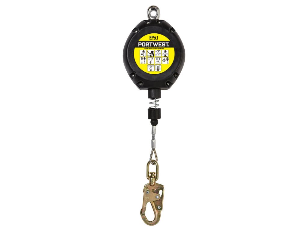 Tento blok proti pádu se skládá z navíjecího záchranného lana z ocelového lana o průměru 4,8 mm, které je uloženo na cívce v ochranném pouzdře. Navíjecí cívka je pružinová a navíjí zatahovací záchranné lano. Naviják je vybaven setrvačným brzdovým mechanismem, který umožňuje pomalé vytahování a automatické zasouvání záchranného lana podle pohybu těla uživatele. Součástí je také otočná karabina s dvojitým bezpečnostním zámkem a indikátorem pádu.Doplňkové parametry