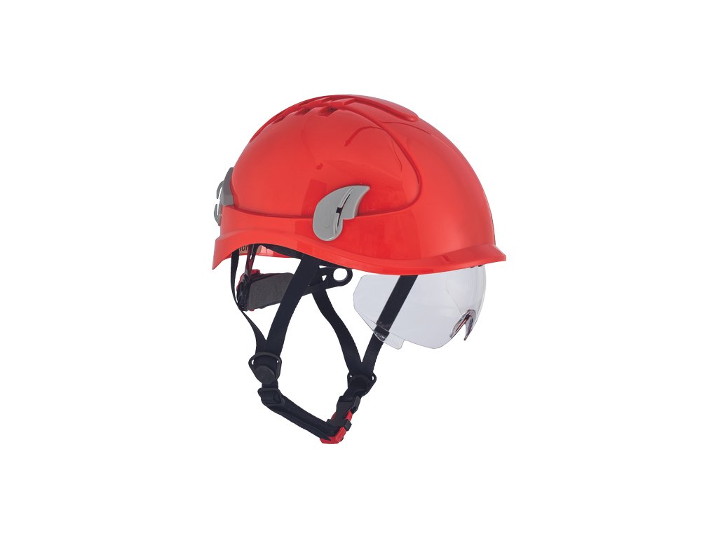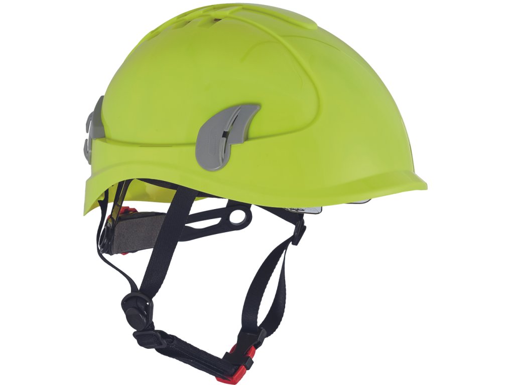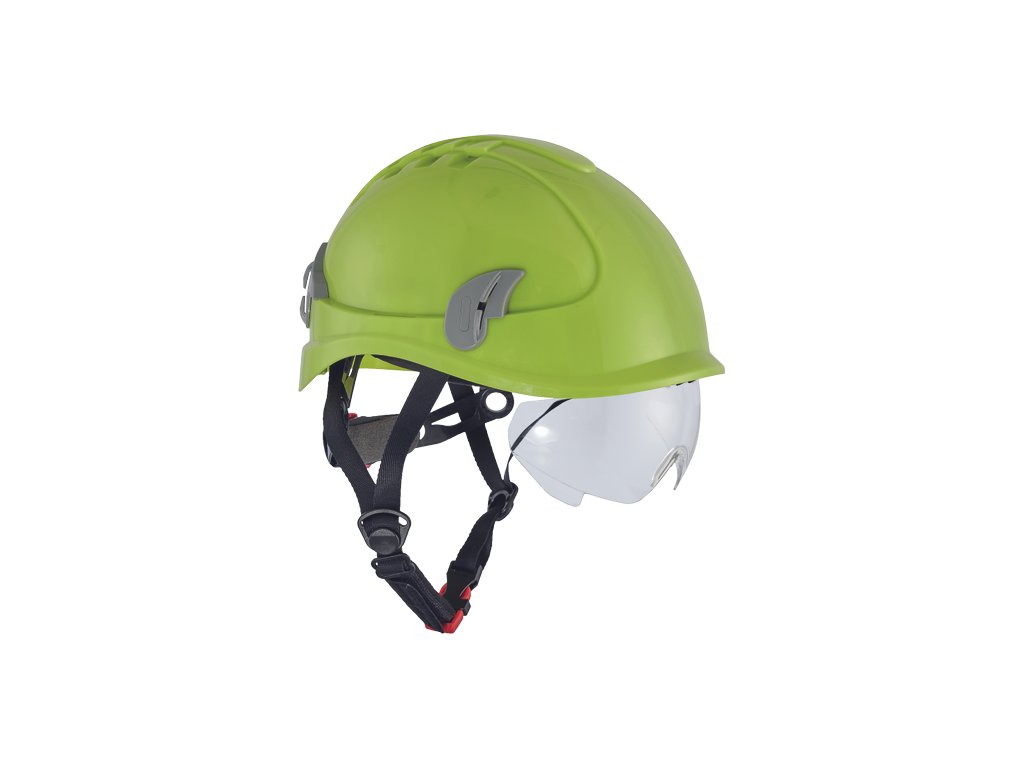 přilba ALPINWORKER je jedna z nejlehčích přileb na trhu, hmotnost pouze 460 g; plášť z polykarbonátu je odvětrávaný pro zajištění maximálního pohodlí, speciální držáky pro uchycení čelovky; krátký kšilt je vhodný pro práci ve výškách; integrované pohodlné brýle splňují normu EN166; nastavení obvodu hlavy pomocí otočného kolečka; unikátní systém 4polohového nastavení hloubky pásu; životnost 2 roky.